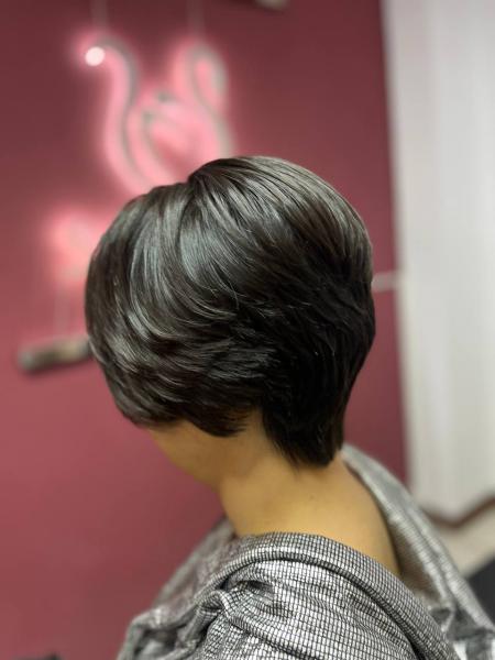 موها را بهصورت یکنواخت و صاف کوتاه کنید. این روش برای ایجاد خطوط تمیز و ساده، مانند مدل باب، ایدهآل است.